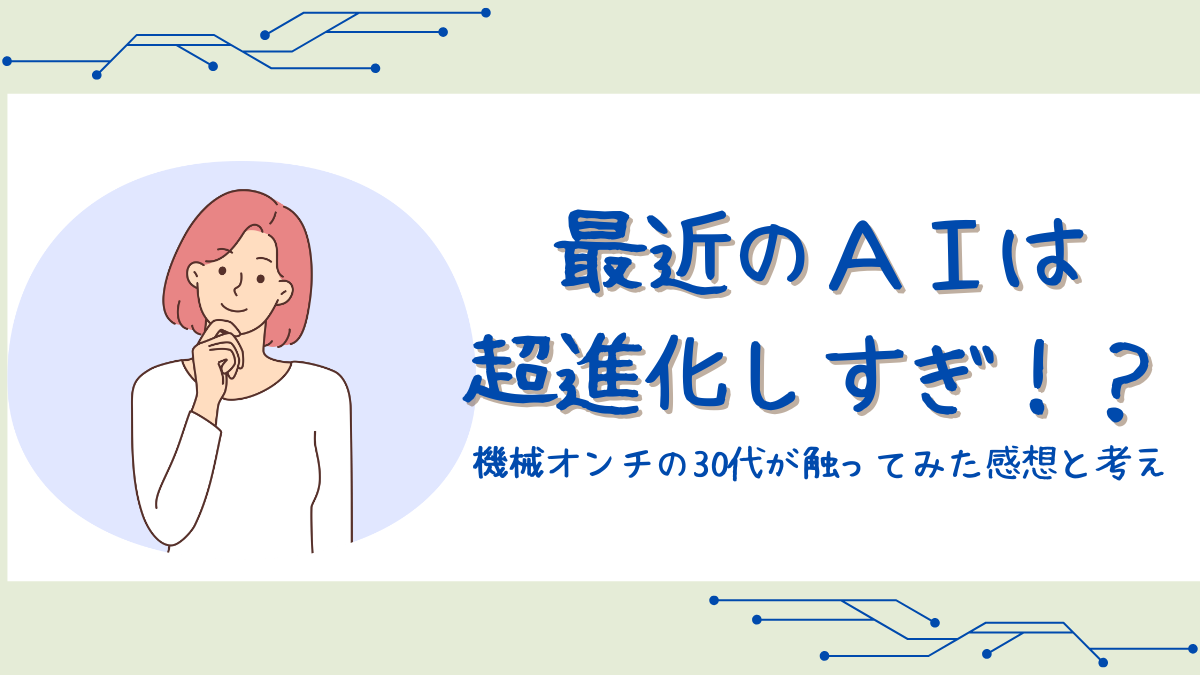 今回は、実際に触って感じたことや、良くない部分など「AIは私たち人間にとってどういう存在になりつつあるのか」を考え、私なりにまとめてみました。